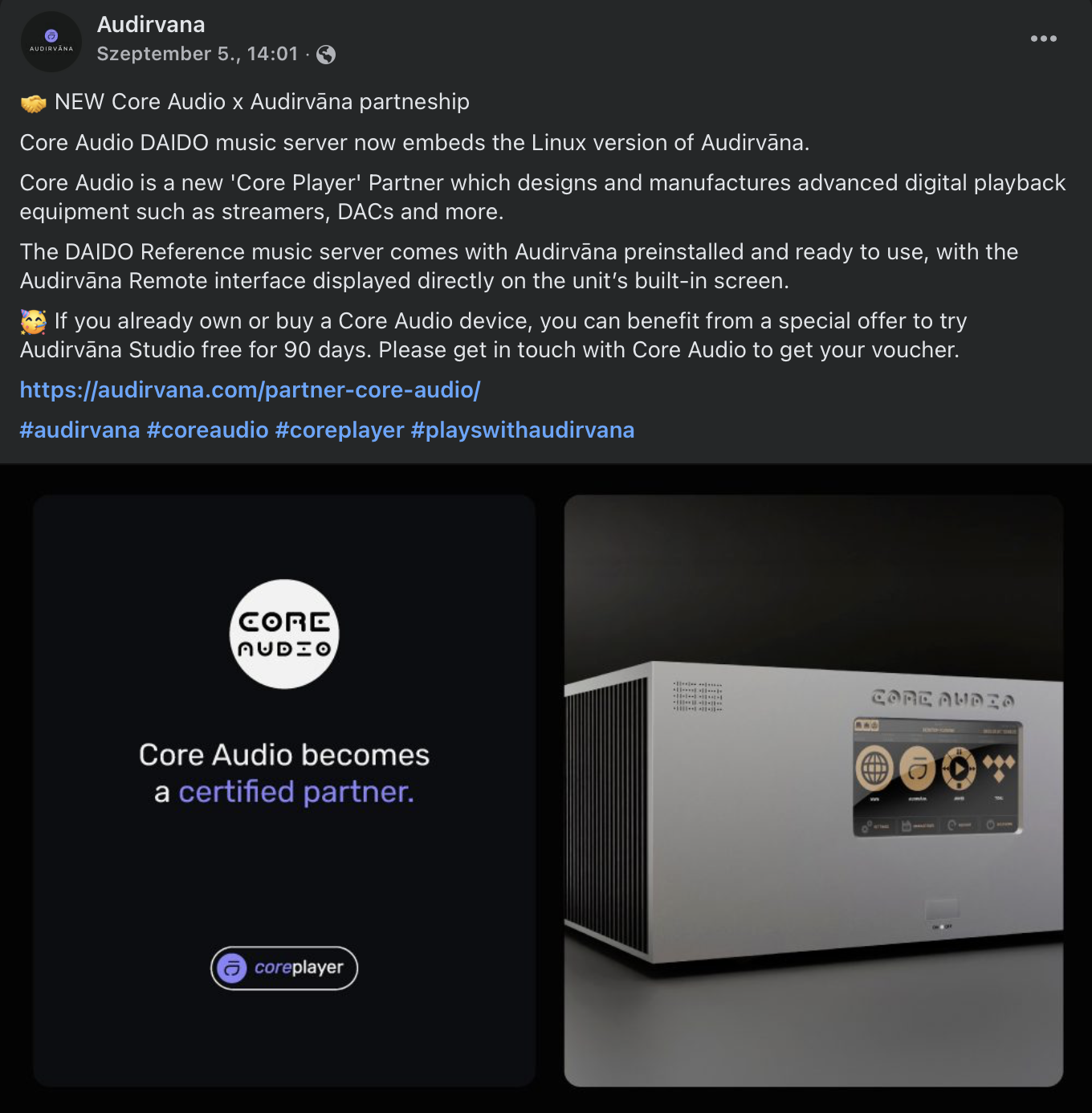 Core Audio became an official Audirvana Partner!
